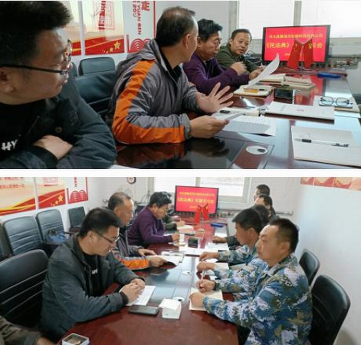 為積極貫徹落實(shí)《中共河北省委宣傳部等部門關(guān)于加強(qiáng)民法典學(xué)習(xí)宣傳的通知》、增強(qiáng)黨員的法律意識(shí)、大力弘揚(yáng)法治精神,10月21日,河北藍(lán)翼黨支部在樂亭養(yǎng)殖基地開展“《民法典》專題學(xué)習(xí)會(huì)”主題黨日活動(dòng)。此次活動(dòng)由公司黨支部書記、董事長焦建改同志主持,部分基地非黨員職工也受邀參加了活動(dòng),未到現(xiàn)場的黨員同一時(shí)間自學(xué)相關(guān)學(xué)習(xí)資料或單獨(dú)抽時(shí)間自學(xué)。