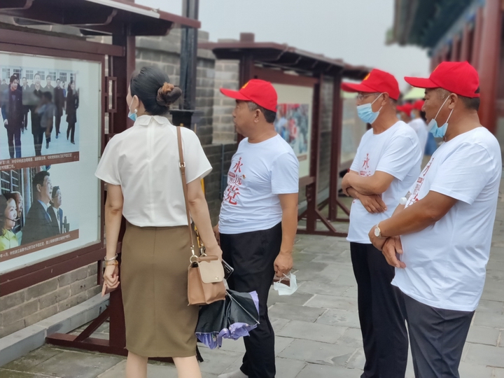 離開(kāi)烈士陵園,一行人來(lái)到了古城正定。撫摸著至今已1600多年的古城墻,黨員們深刻體會(huì)到古代勞動(dòng)人民的聰明才智和堅(jiān)強(qiáng)毅力,感受到古城悠久歷史文化的魅力。通過(guò)解說(shuō)員的講解,大家了解到,在上世紀(jì)八十年代,習(xí)近平同志曾任正定縣委副書(shū)記和書(shū)記,在正定工作了三年多。他曾說(shuō):“正定是我從政起步的地方,這里是我的第二故鄉(xiāng)。”在這里,他深入調(diào)研,實(shí)事求是,敢于擔(dān)當(dāng),銳意改革,端正黨風(fēng),謀劃發(fā)展,使正定這個(gè)歷史文化底蘊(yùn)深厚的冀中平原農(nóng)業(yè)縣趕上時(shí)代大潮,煥發(fā)出勃勃生機(jī)活力。同志們認(rèn)真聆聽(tīng)習(xí)近平總書(shū)記在這里工作時(shí)的點(diǎn)點(diǎn)滴滴,更加真切地感受到總書(shū)記真摯樸實(shí)的為民情懷、堅(jiān)定不移的改革勇氣、久久為功的實(shí)干精神,體會(huì)到了習(xí)近平新時(shí)代中國(guó)特色社會(huì)主義理論逐步形成和完善的思想基礎(chǔ)。